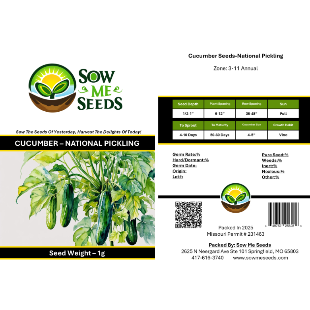 National Pickling Cucumber is an heirloom variety developed with pickling in mind, but equally delicious fresh off the vine. These compact plants produce crisp, blocky green cucumbers with thin skins and small seeds — perfect for jars, relish trays, or crunchy snacks. Fast-growing and productive, it’s a favorite for home canners and fresh market growers alike.
