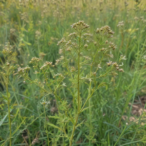 Cumin is an ancient herb prized for its warm, earthy flavor and aromatic seeds. Grown for thousands of years in Mediterranean and Middle Eastern cuisines, this heirloom variety thrives in sunny gardens with dry conditions. Its delicate, feathery foliage and small white blooms resemble carrots or dill, making it an attractive and functional herb for your garden and kitchen.