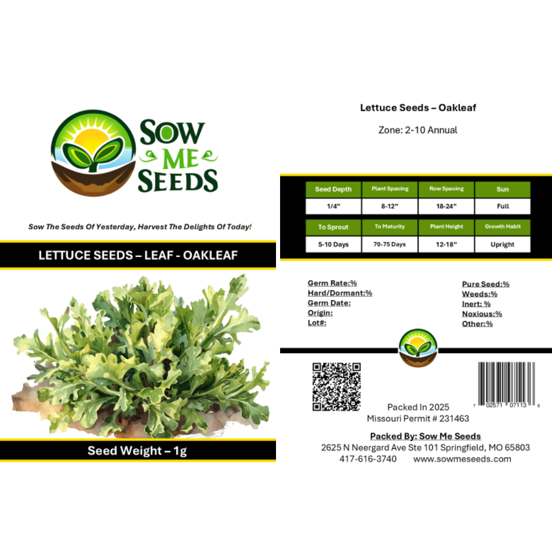 Oakleaf Lettuce is a classic heirloom variety with deeply lobed leaves and a tender, mild flavor. Known for its loose-leaf growth and steady production, this variety is perfect for cut-and-come-again harvests in both spring and fall gardens.