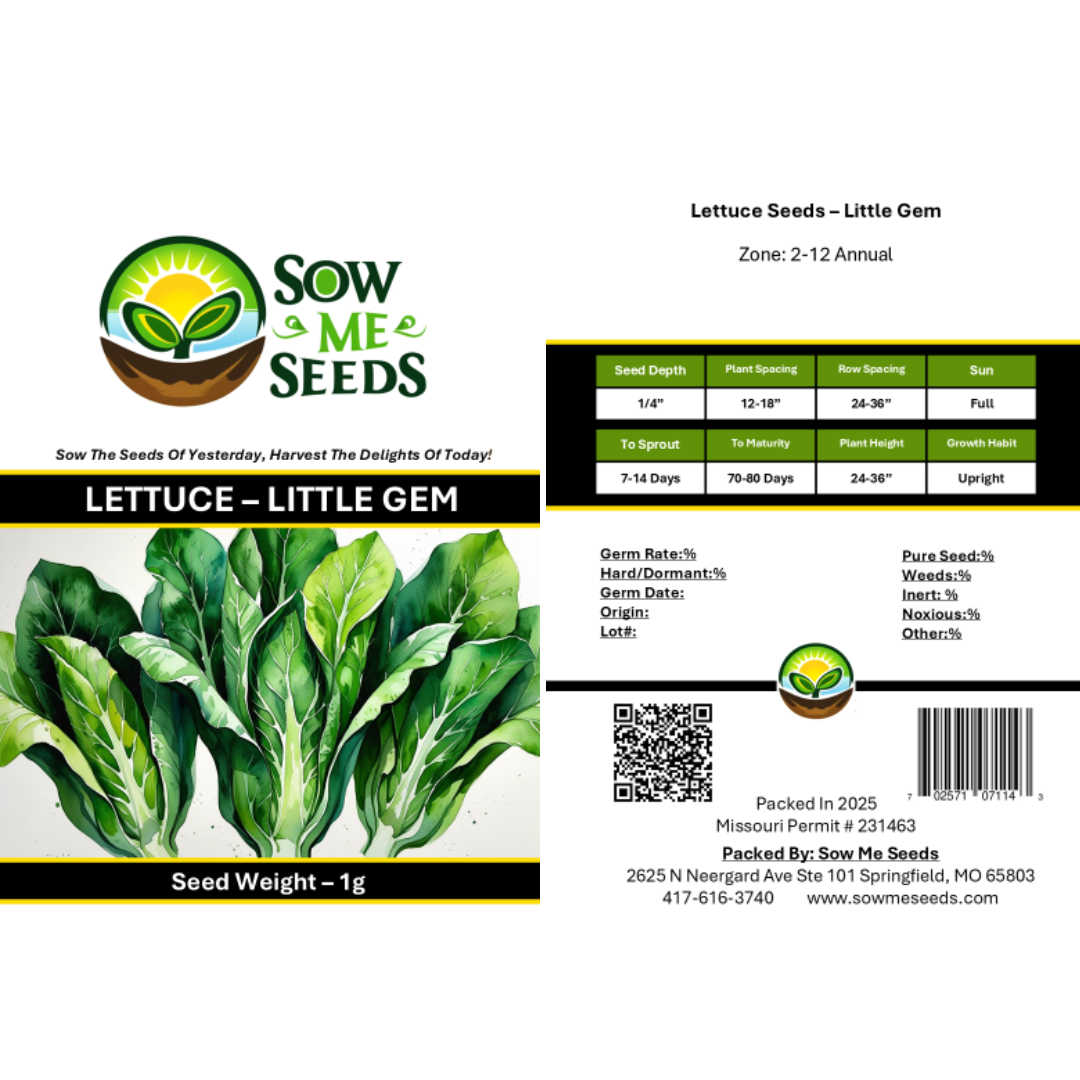 Little Gem Lettuce is a compact heirloom romaine known for its crisp texture, sweet flavor, and tidy, mini-sized heads. Growing just 4–6 inches tall, it’s perfect for tight garden spaces, raised beds, and containers. These personal-sized heads are quick to mature, easy to harvest, and delicious straight from the garden — whether picked whole or leaf by leaf. A top choice for home gardeners seeking flavor, productivity, and beauty in one little plant.