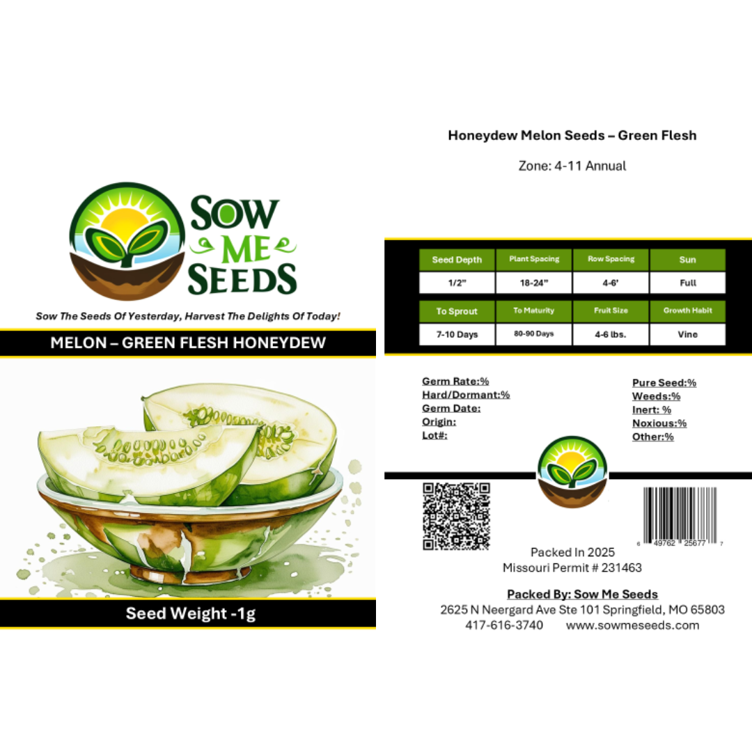 Green Flesh Honeydew is a classic heirloom melon known for its smooth rind, pale green interior, and refreshingly sweet flavor. These round melons thrive in warm weather and offer a cool, juicy bite that’s perfect for summer snacking and chilled desserts.