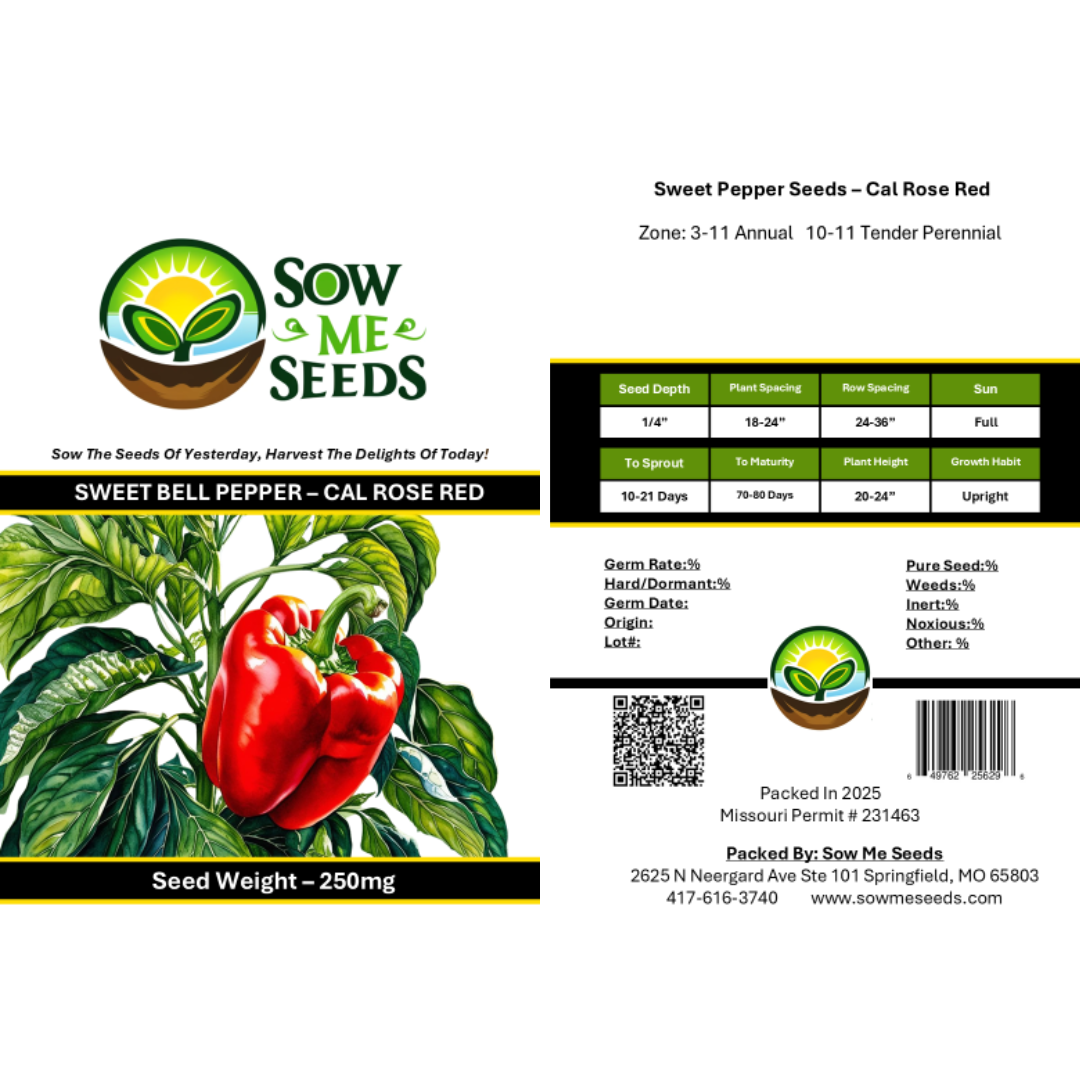 Cal Rose Red Sweet Bell Pepper is a reliable heirloom variety known for its thick-walled fruits, sweet flavor, and bright crimson color. These blocky, medium-sized peppers are perfect for slicing, stuffing, roasting, or eating fresh off the plant. Productive and vibrant, they’re a go-to for both beginner and experienced gardeners looking for flavor and beauty in one tidy plant.