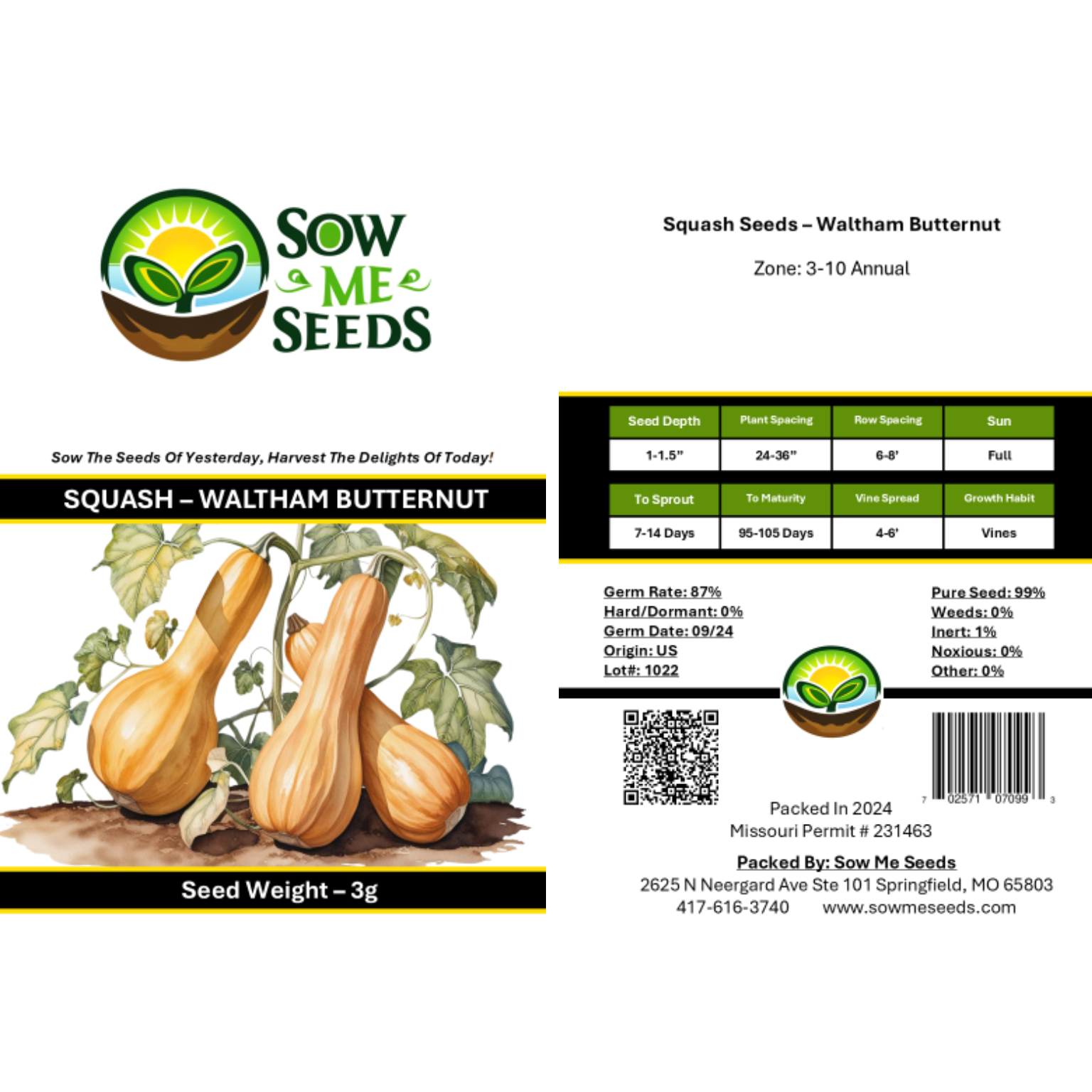 Waltham Butternut is a reliable heirloom winter squash with smooth tan skin, rich orange flesh, and a sweet, nutty flavor. Known for its productivity and long storage life, this variety produces uniform fruits with a classic bell shape β perfect for roasting, soups, and cold-weather meals.
